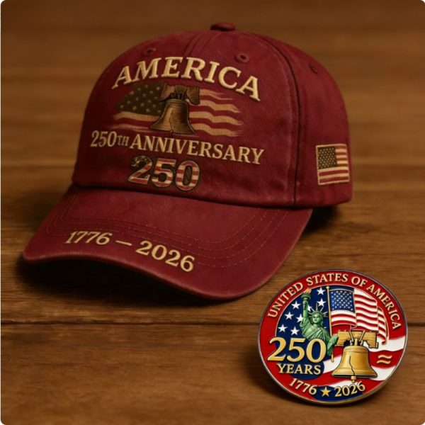 Unisex vintage American 250th Anniversary cap, adorned with 3 exquisite embroidered details – Hand wash/air dry – Non-elastic historical commemorative cap to celebrate the 250th anniversary of the founding of the United States.
