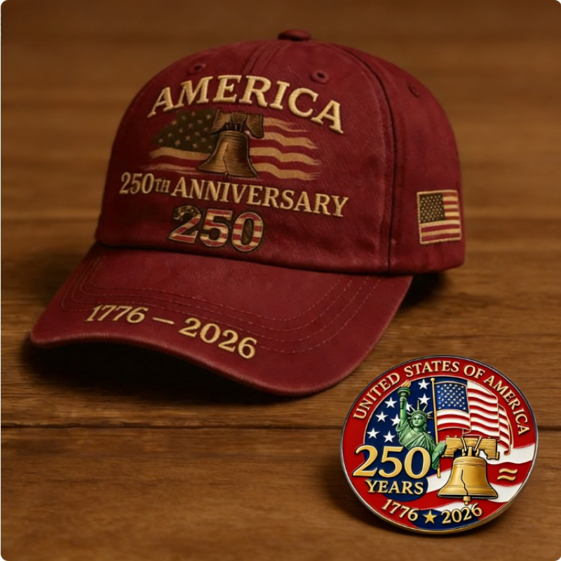 United States 250th Anniversary Baseball Caps | Patriotic Unisex Adjustable Hats for Men and Women with Commemorative Pin, Vintage Style, Knit Fabric, Flat Embroidery